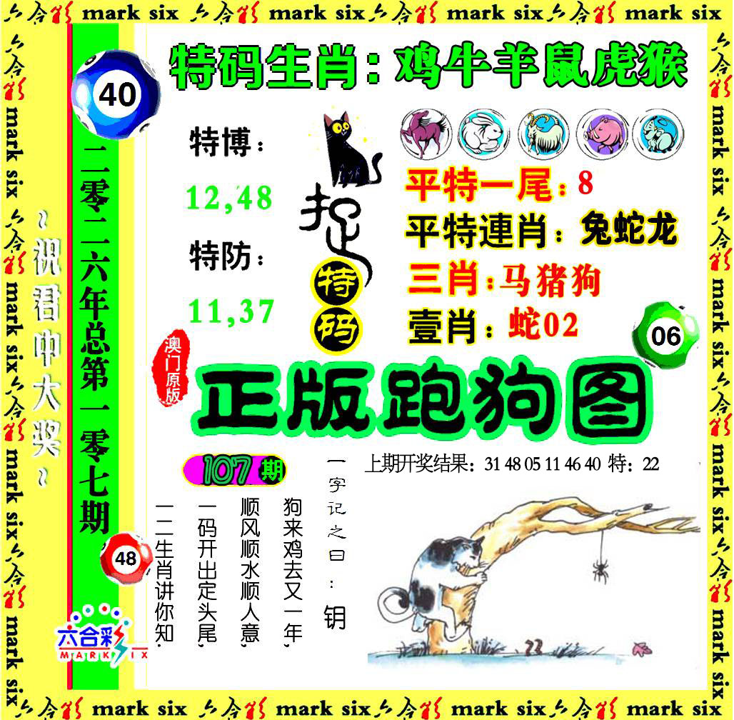 106期:六肖【马狗鼠龙牛鸡】开:22鸡准